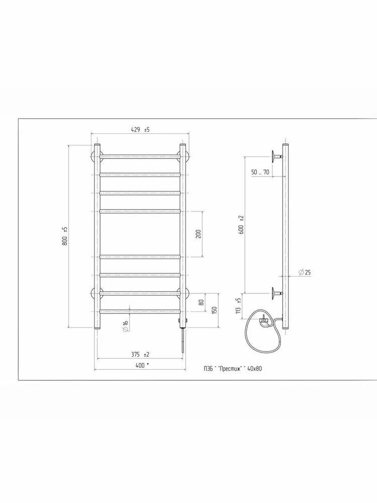 АРГО Полотенцесушитель электрический Орион Престиж 40*80, 60 вт К-таймер, Слева.: сравнение цен, характеристики, фото, актуальное наличие и цены.