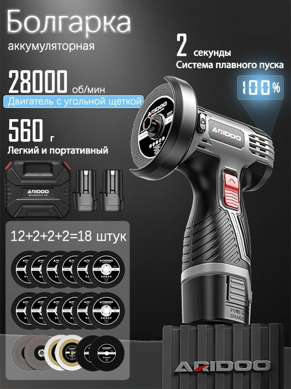 ARIDOO болгарка аккумуляторная, Цифровой дисплей, 28000 об/мин, Двигатель с угольной щеткой, Батарея*2, 18 штук режущих лезвий: сравнение цен, характеристики, фото, актуальное наличие и цены.