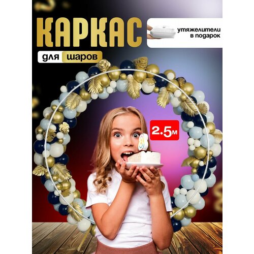 Профессиональный каркас для фотозоны круглый украсит любой праздник, даже домашний, на высшем уровне. Подставка сделана из металла. В комплекте с аркой 2 утяжелителя для устойчивости. Ее без труда можно собрать и установить абсолютно в любом месте. Она поможет прикрыть некрасивую стену, организовать красивые декорации из цветов на вечеринку или для фотосессии. На нее можно повесить фольгированный дождик фон, баннер и др. праздничные украшения для зала, например, воздушные шары. Товары и аксессуары, а именно фотозона круглая для шариков подходит не только для поздравления с днем свадьбы, но и на день рождения, для дня матери и доступна абсолютно всем. Теперь композиция из шаров - это не только свадебная или новогодняя мода. Благодаря ей получится отличный детский фотофон девочке и для мальчика или оформление фото зоны на юбилей девушке или для мамы. За счет диаметра готовой арки (2,5 метра) на фотофоне уместится большая компания детей, подростков и взрослых людей. Стойка для баннера сустойчивая при большом количестве декора на ней. Декоративная арка устанавливается и разбирается за считанные минуты. Полотно крепится к ней с помощью больших канцелярских зажимов или на магниты. В разобранном виде вся конструкция умещается в маленький короб с деталями. Каркас для арки плюс гирлянда или набор шаров - это все для праздника, что вам нужно, чтобы получилось эффектное и необычное украшение на любое мероприятие: гендер пати (gender party) на определение пола ребенка boy or girl, др 1 годик малыша, девичник, свадьба, на выписку из роддома, на выпускной в детском саду или школе, новый год, Хэллоуин и т. д.