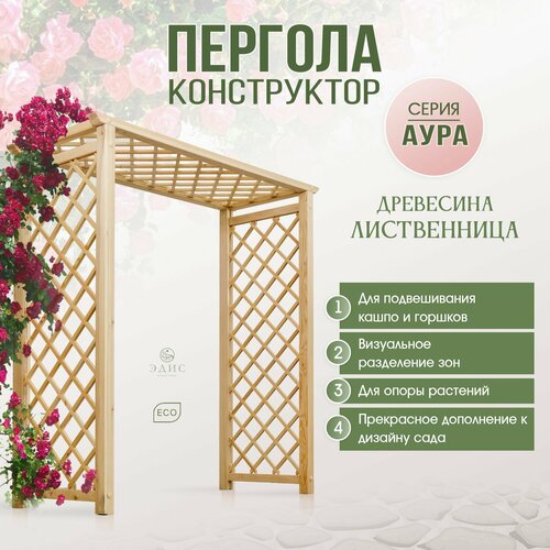 Садовая пергола - это декор для сада, выполненный в виде арки, тоннеля. Арка садовая изготовлена из массива лиственницы, в одном стиле с нашими шпалерами, по собственному эскизу и отличается от арки (арт. сп0001) шириной стенки. Глубина арки - 73 см.