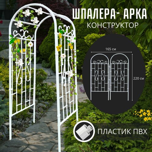 Купить Арка — шпалера садовая пластик ПВХ 220х150х50 см белая ГарденПласт с доставкой по всей России.