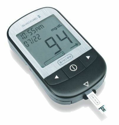 Глюкометр Глюкокард Сигма производится в России компанией Arkray (Япония) в Дубне на совместном предприятии. Прибор имеет компактные размеры, большой экран, не требует кодирования, позволяет ставить отметки "до еды" и "после еды" при сохранении результатов измерения в памяти.Предназначен для количественного измерения (диагностика invitro) уровня глюкозы в свежей цельной капиллярной крови в домашних условиях или в лечебных учреждениях.Измерения производятся с использованием тест-полосок Глюкокард Сигма.Тест-полоски Глюкокард Сигма №50 предназначены для использования вместе с глюкометрами Глюкокард Сигма и Глюкокард Сигма Мини.Упаковка - 50 штук в пластиковом тубусе Срок годности - 6 месяцев после начала использования (первое вскрытие тубуса) Время измерения - 7 секунд Задание кода тест-полосок - без кодированияПринцип измерения - электрохимический Калибровка - по плазме крови