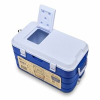 Термоконтейнер ударопрочный корпус, Герметичная конструкция, двойная стенка из прочного пластика с прослойкой из пенополиуретана, удобная ручки с двух сторон, емкость для льда, встроенный слив для конденсата, окошко для легкого доступа внутрь