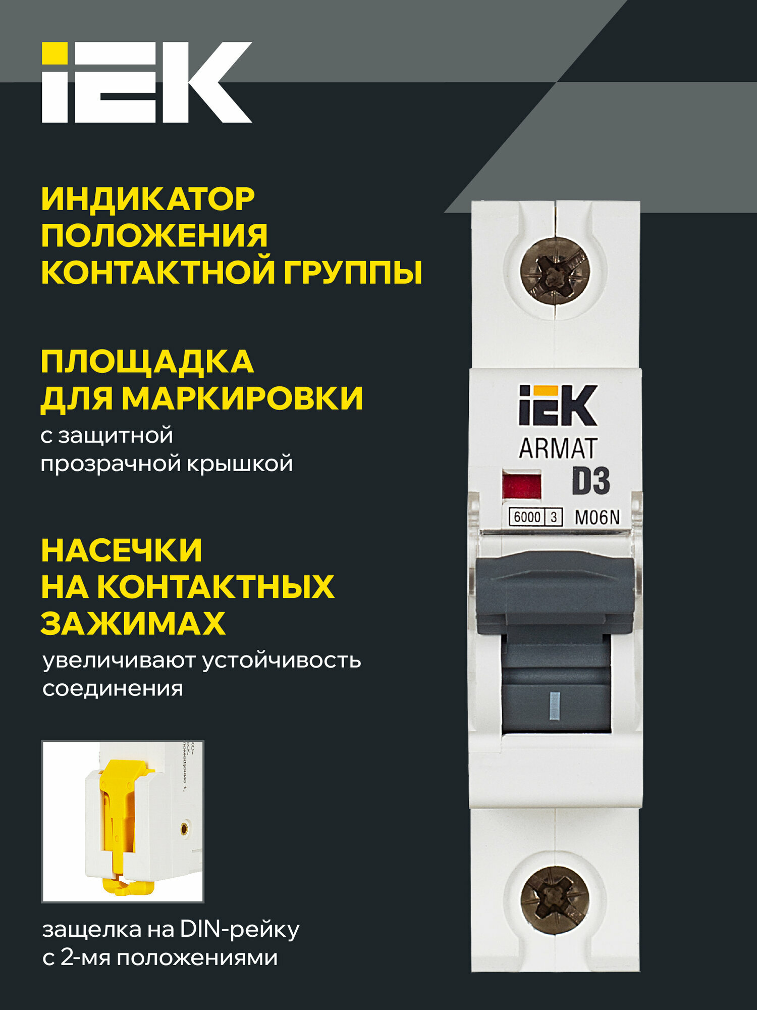 Купить ARMAT Выключатель автоматический однополюсный D 3А M06N , IEK AR-M06N-1-D003 (1 шт.) с доставкой по всей России. ARMAT Выключатель автоматический однополюсный D 3А M06N , IEK AR-M06N-1-D003 (1 шт.): сравнение цен, характеристики, фото, актуальное наличие и цены.