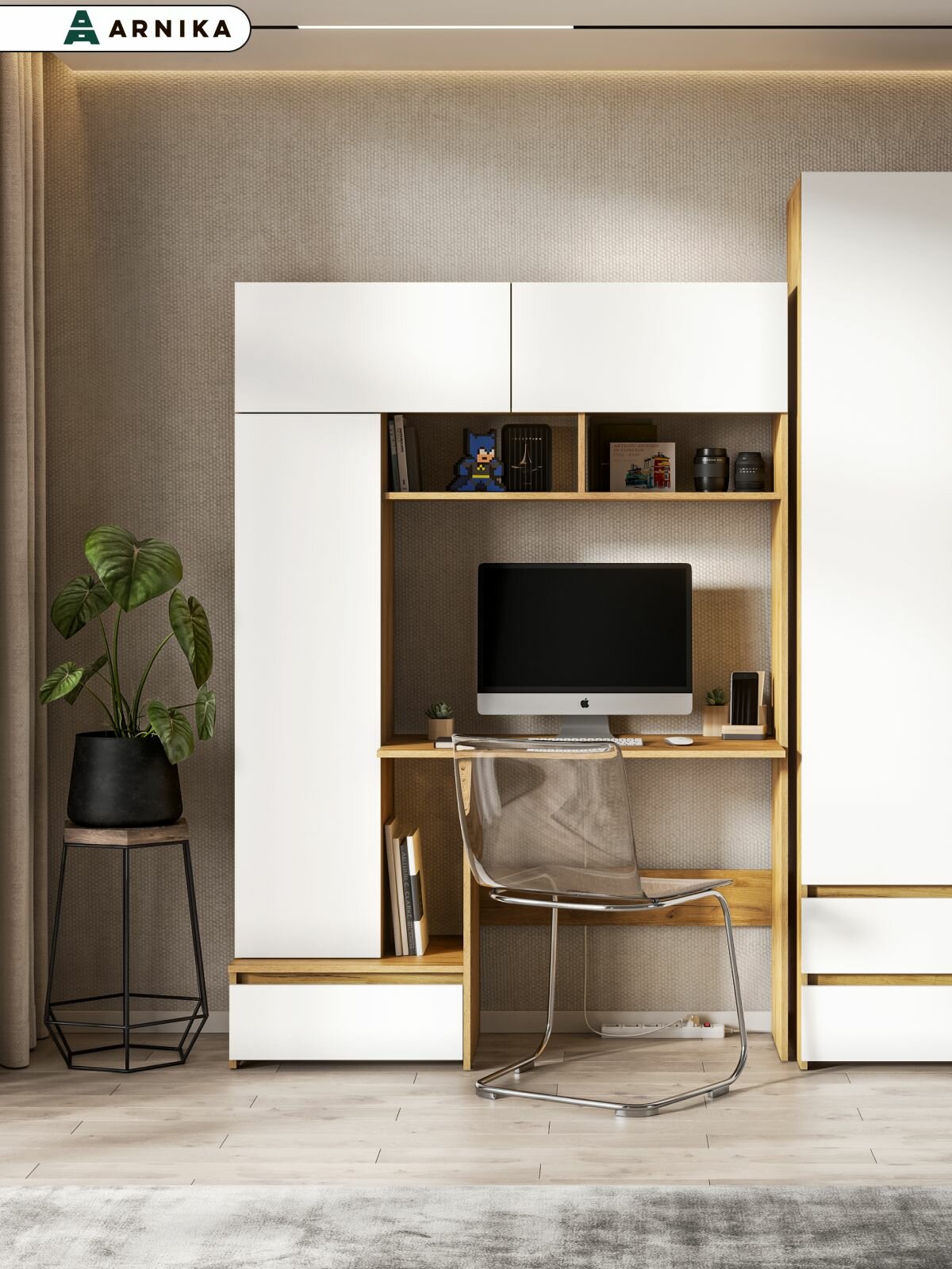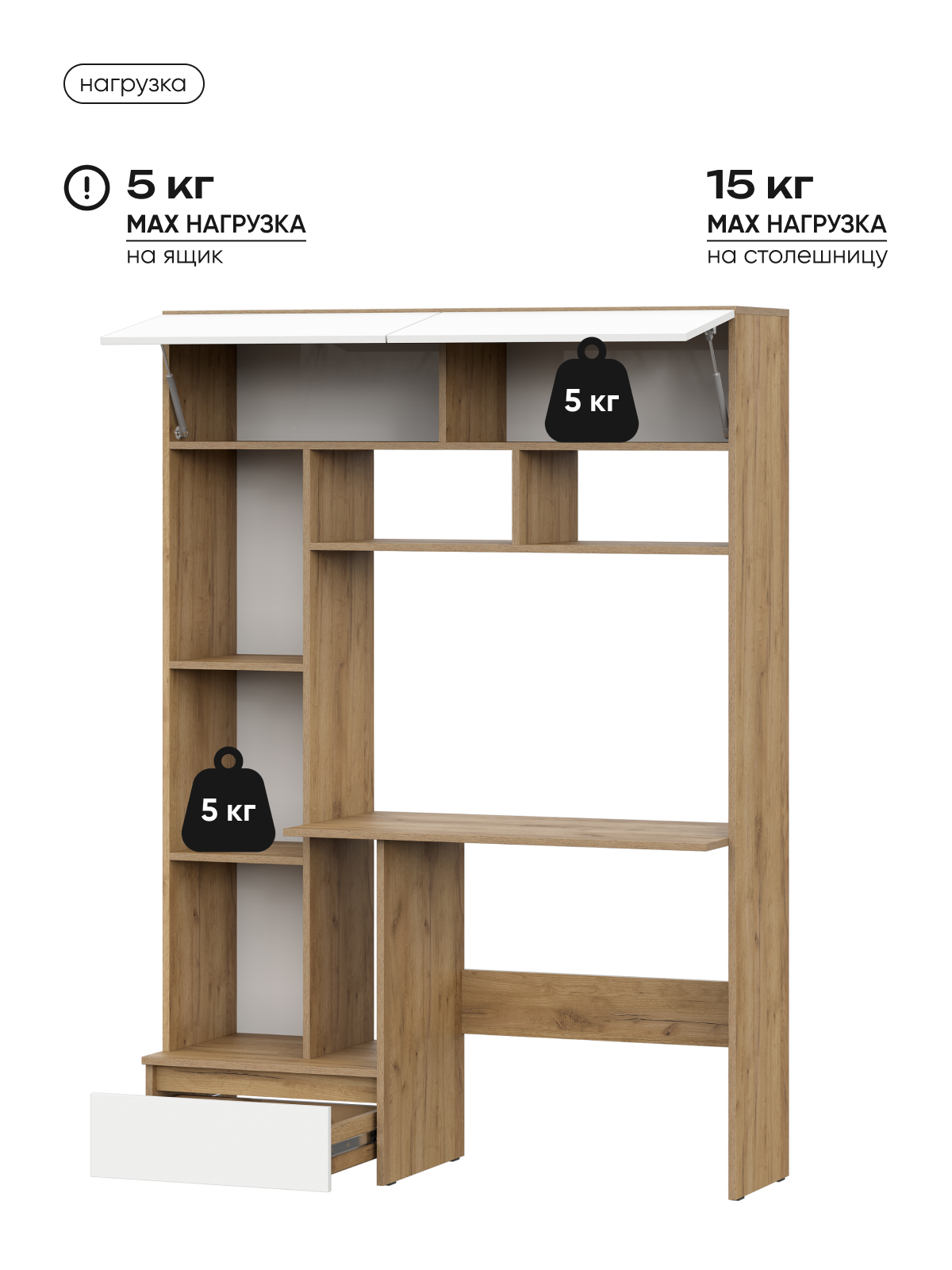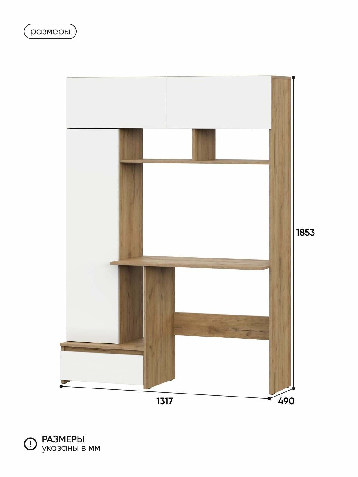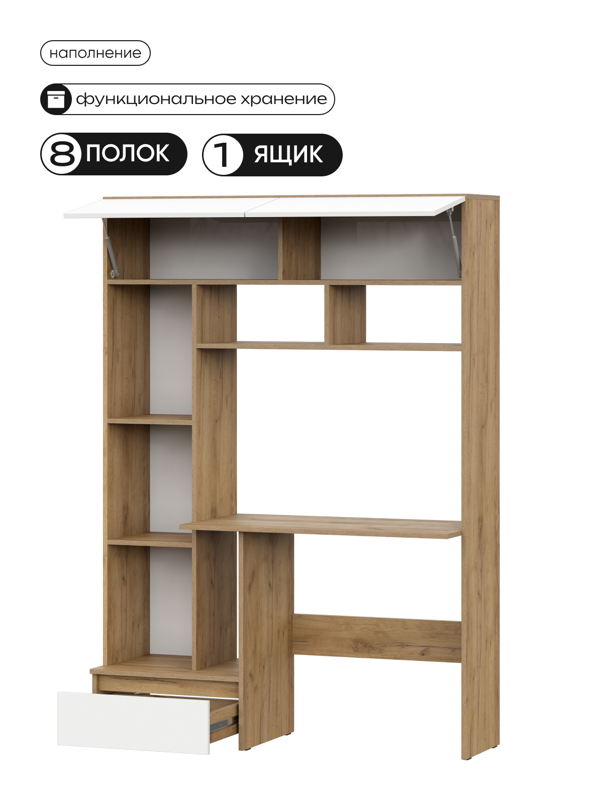 ARNIKA Стол компьютерный с полками, для школьника «Нейтив» 131х49х185см, Дуб Золотой/Белый: сравнение цен, характеристики, фото, актуальное наличие и цены.