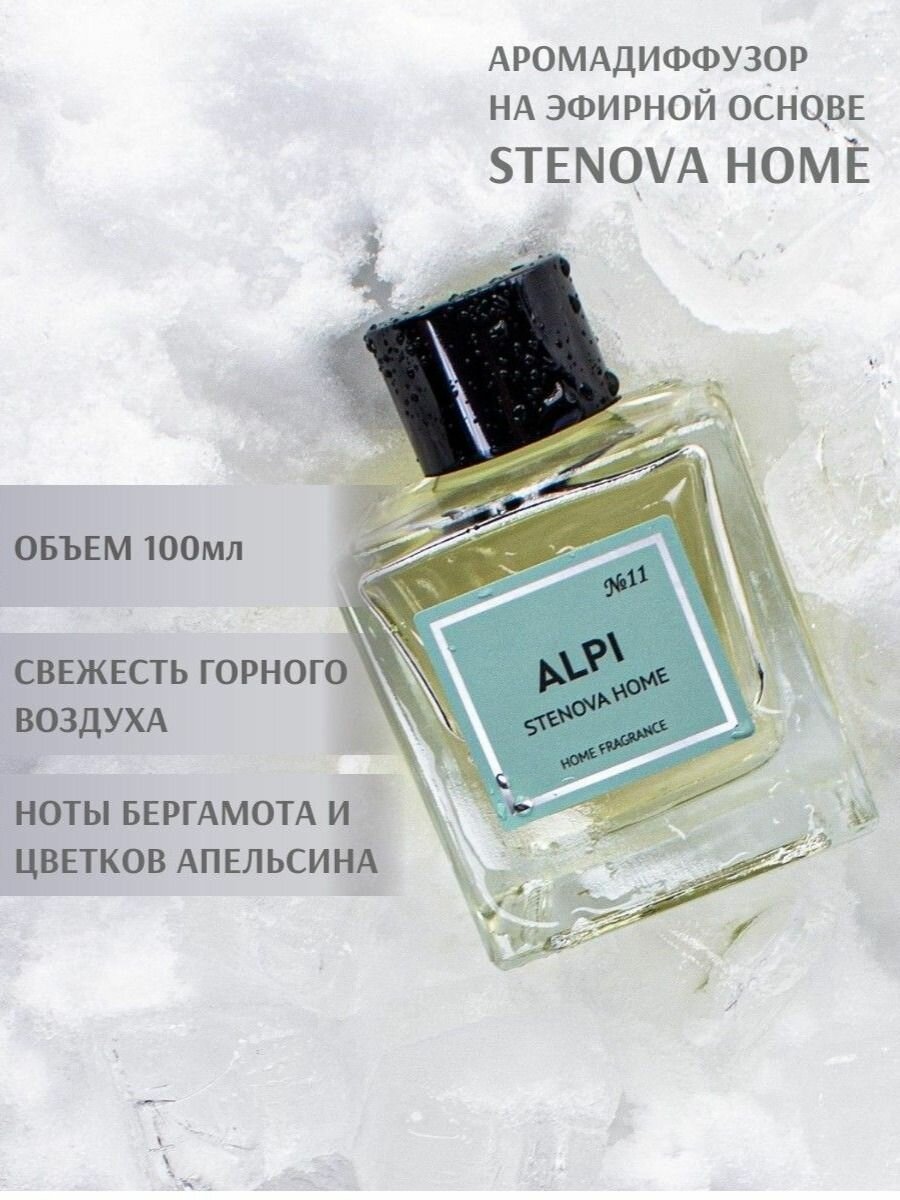 Мы представляем вашему вниманию наш новый аромат для дома №11 ALPI.Аромат чистоты и свежести горного воздуха создадут настроение свободы и релакса. Нотки бергамота, тонкий аромат цветков апельсина и зеленого чая раскрываются постепенно, наполняя пространство вашего дома.Закрывающим аккордом звучат ароматы красного дерева и мускуса.Ароматическая композиция на эфирной основе выпускается во флаконах объемом 100 и 50 мл. В каждой упаковке находится комплект палочек из микрофибры (100мл - 8 палочек, 50мл - 6 палочек), буклет с описанием и сам флакон, наполненный ароматической композицией.Погрузитесь в неповторимый флер горных Альп вместе с нашим новым ароматом от STENOVA HOME.