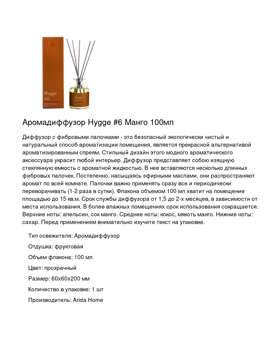 Купить Аромадиффузор Hygge #6 Манго 100мл с доставкой по всей России. Аромадиффузор Hygge #6 Манго 100мл: сравнение цен, характеристики, фото, актуальное наличие и цены.
