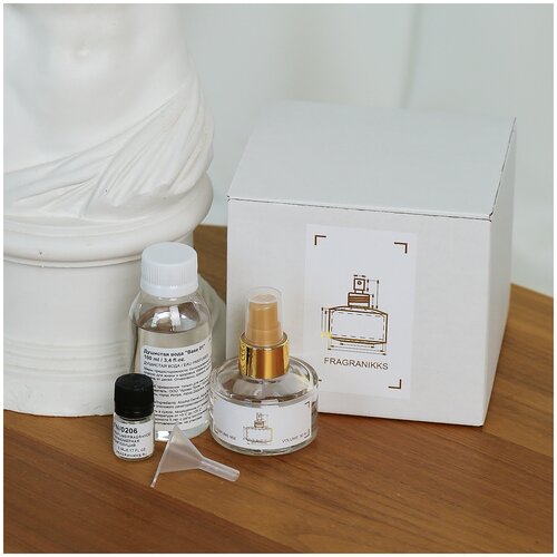Этот набор для создания парфюмерии от FragraNikks включает в себя флакон-спрей 50 мл, парфюмерную композицию в виде фиолы 5 мл и парфюмерный спирт 100 мл. Вы также получаете воронку лабораторную, пипетку Пастера, инструкцию по смешиванию и подарок-комплимент в виде саше.