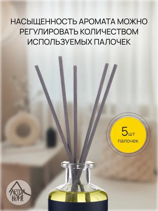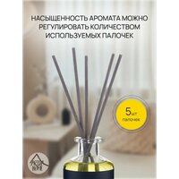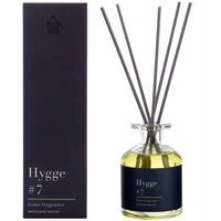 Аромат для дома Hygge 7 «Виноград мускат» способствует созданию атмосферы тепла, душевности и спокойствия. Позволяет расслабиться и отдохнуть после тяжелых трудовых будней. Верхние ноты представлены виноградом, черной смородиной, клубникой и малины, в средних можно ощутить сочетание яблока и флердоранжа, а в нижних — сладость пралине и ванили. Насыщенность и интенсивность аромата регулируется при помощи количества используемых палочек — чем их больше, тем сильнее он будет ощущаться. Способ применения простой: установите диффузор на ровную поверхность, достаньте пробку и вставьте в емкость палочки. Особенности: - объем — 100 мл; - в комплекте диффузор и 5 палочек; - площадь покрытия — около 15 м²; - легкий, приятный аромат; - бесспиртовая основа.