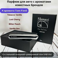 Парфюмированный ароматизатор для салона автомобилей подчеркнет индивидуальный стиль и дополнит дизайн интерьера салона. Корпус диффузора изготовлен из металлического корпуса с магнитами и фиксатором на воздуховоде автомобилей, отлично подходит как ароматизатор для автомобилей Exeed, Omoda, Gac, Chery, Haval, Geely, Huyndai, Kia, Changan, Lada, Jac, Москвич BMW, Mercedes, Audi, Porshe. В набор автомобильный парфюм входят четыре культовые аромата из коллекции Tom Ford в салон автомобиля: Tobacco Vanilla, Lost Chery, Bitter Peach, Vanilla Sex. Это не автомобильная вонючка, это автопарфюм для авто. Каждый аромат находится в своей индивидуальной упаковке, после вскрытия которой аромат сразу следует вставить в диффузор. Интенсивность аромата будет зависеть от температуры воздуха, подаваемого из воздуховода и силы потока воздуха. Один аромат остается узнаваемым около 3 недель. После того как ароматы закончатся или Вам захочется попробовать новые ароматы, упаковки с ароматами можно будет приобрести отдельно.