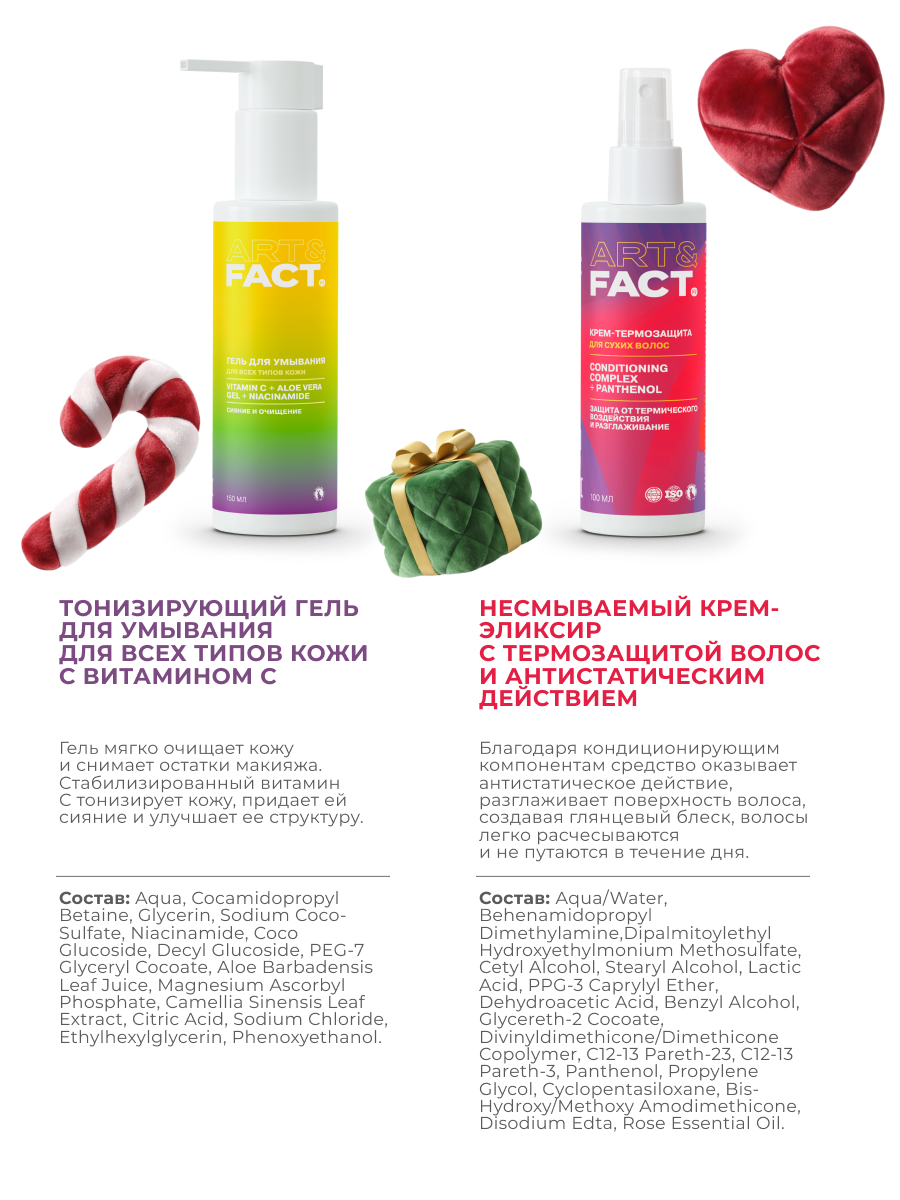 | Состав | 1. Несмываемый крем-эликсир с термозащитой волос и антистатическим действием: Aqua/Water, Behenamidopropyl Dimethylamine,Dipalmitoylethyl Hydroxyethylmonium Methosulfate, Cetyl Alcohol, Stearyl Alcohol, Lactic Acid, PPG-3 Caprylyl Ether, Dehydroacetic Acid, Benzyl Alcohol, Glycereth-2 Cocoate, Divinyldimethicone/Dimethicone Copolymer, C12-13 Pareth-23, C12-13 Pareth-3, Panthenol, Propylene Glycol, Cyclopentasiloxane, Bis-Hydroxy/Methoxy Amodimethicone, Disodium Edta, Rose Essential Оil. 2. Тонизирующий гель для умывания для всех типов кожи с витамином С: Aqua, Cocamidopropyl Betaine, Lauryl Glucoside, Cocamidopropylamine Oxide, Glycerin, Cocamide DEA, Hydroxyethyl Urea, PEG-7 Glyсeryl Cocoate, Aloe Barbadensis (Aloe Vera) Leaf Gel, Camellia Sinensis (Green Tea) Leaf Extract, Magnesium Ascorbyl Phosphate, Niacinamide, Betaine, Panthenol, PEG-150 Distearate, Citric Acid, Lactic Acid, Ethylhexylglycerin, Phenoxyethanol. 3. Очищающий и увлажняющий энзимный пилинг для кожи головы и волос с папаином 3,5%: Aqua, Papain, PEG-40 Hydrogenated Castor Oil, Glycerin, Butylene Glycol, Hydroxyethylcellulose, Ananas Sativus (Pineapple) Fruit Extract, Salicylic Acid, Cucumis Sativus (Cucumber) Fruit Extract, Menthol, Lavandula Angustifolia (Lavender) Flower Extract, Rosmarinus Officinalis (Rosemary) Extract, Sphagnum Magellanicum Extract, Mentha Piperita (Peppermint) Essential Oil, Sodium Hydroxide, Ethylhexylglycerin, Phenoxyethanol. 4. Сыворотка для лица с 3D стабилизированным витамином C: Aqua, Isopropyl Myristate, Caprylic/Capric Triglyceride, Butyrospermum Parkii (Shea) Butter, Ascorbyl Palmitate, Ascorbyl Glucoside, Sodium Ascorbyl Phosphate, Niacinamide, Potassium Cetyl Phosphate, Cetearyl Glucoside, Cetearyl Alcohol, Xanthan Gum, Ammonium Polyacryloyldimethyl Taurate, Triethanolamine, Tocopheryl Acetate, Phenoxyethanol, Ethylhexylglycerin. 5. Увлажняющий крем для лица с низкомолекулярной гиалуроновой кислотой: Aqua, Cetearyl Alcohol, Glyceryl Stearate SE, Sodium Polyacryloyldimethyl Taurate, Glycerin, Isopropyl Palmitate, Hyaluronic Acid, Propolis Extract, Mel Extract, Propylene Glycol, Betaine, Sodium PCA, Sorbitol, Serine, Glycine, Glutamic Acid, Alanine, Lysine, Arginine, Threonine, Proline, Royal Jelly, Allantoin, Caprylic/Capric Triglyceride, Hydrogenated Polydecene, Trideceth-10, Phenoxyethanol, Ethylhexylglycerin. |