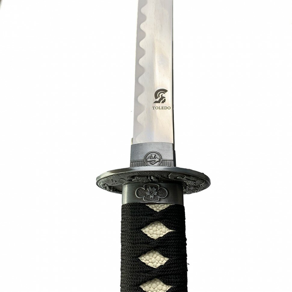 Общая длина: 103 см. Длина без ножен: 98 см. Длина клинка: 70 см. Длина рукояти: 27 см. Наибольшая ширина клинка: 2,8 см. Толщина обуха клинка: 5,8 мм. Материал клинка: Металл. Материал рукояти: Металл, Текстиль, Искусственная кожа. Материал ножен: Дерево, Металл, Текстиль. Комплектация: Катана, Сертификат. Подставка не входит в комплект Вес с ножнами: 1130 г. Вес без ножен: 950 г. Наличие заточки у клинка: Не заточен. Бренд: Art Gladius (Испания). Страна производства: Испания. Упаковка: Подарочная картонная коробка. Сертификат приложен (Не является боевым холодным боевым оружием, не требует разрешения на приобретение, хранение и ношение). Катана имеет богатую историю, которая восходит к древним временам самураев и ниндзя. Катана ассоциируется с японской культурой и традициями, а также с аниме и мангой. Для детей и подростков катана может стать не только интересной игрушкой, но и способом познакомиться с японской культурой. Игрушечные катаны могут быть выполнены из различных материалов, таких как пластик, дерево или железо. Металлическая катана — это отличный подарок для мальчика или мужчины, который увлекается аниме, играми или японской культурой. Она может стать частью коллекции или использоваться для косплея. Если вы ищете подарок на день рождения или новый год, то это отличный выбор. Она станет не только интересным аксессуаром, но и символом мужества и силы. Истинное воплощение духа самурая, это изделие наполнит вашу жизнь мудростью и силой. Откройте для себя новые горизонты восточной культуры, добавив неповторимый акцент в свою коллекцию.