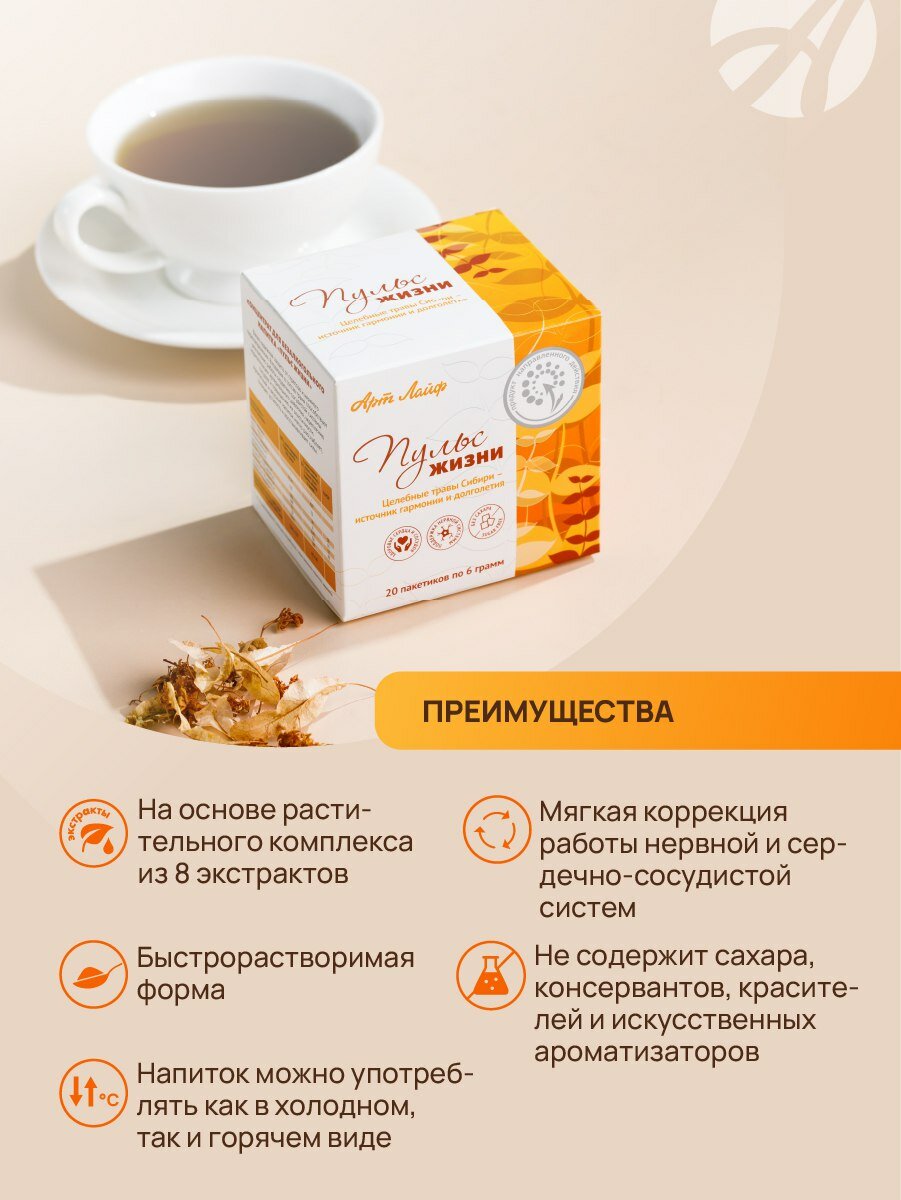 Купить Арт Лайф Напиток Пульс жизни Быстрорастворимый, без сахара. Мягко успокаивает и снимает напряжение. 20 пак с доставкой по всей России. Арт Лайф Напиток Пульс жизни Быстрорастворимый, без сахара. Мягко успокаивает и снимает напряжение. 20 пак: сравнение цен, характеристики, фото, актуальное наличие и цены.