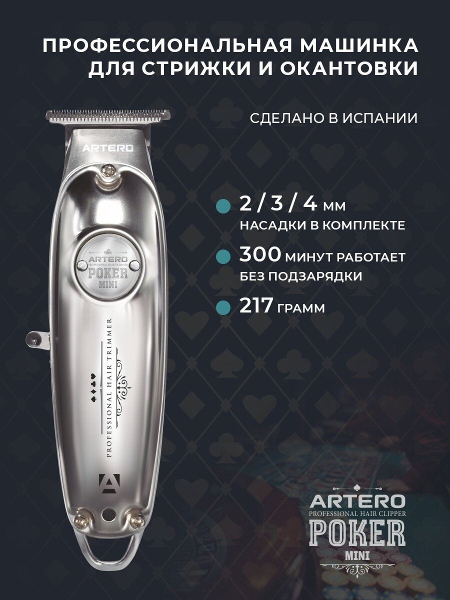 ARTERO Professional Машинка профессиональная для окантовки Poker Silver Mini M631: сравнение цен, характеристики, фото, актуальное наличие и цены.