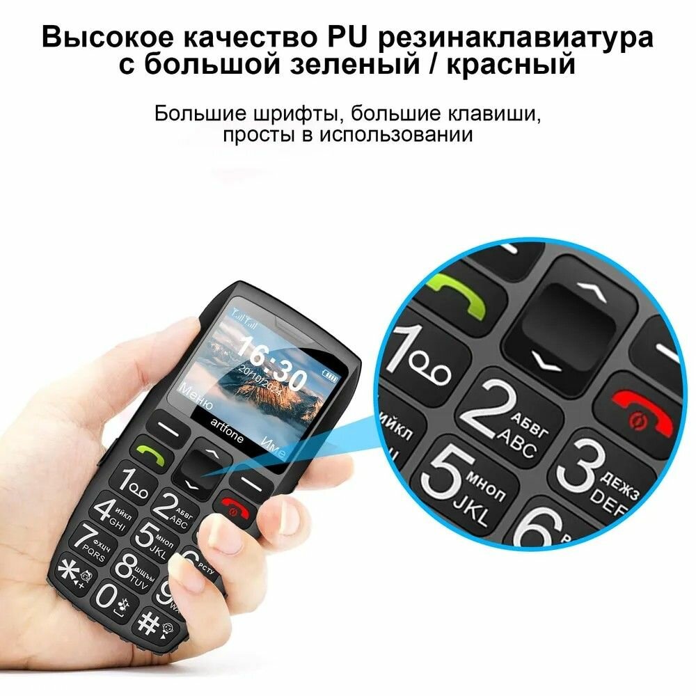 Русский телефон с клавиатурой, телефон artfone 2G с двумя SIM-картами, подходит для пожилых людей, большие клавиши, разблокированный телефон для пожилых людей, с функцией SOS, фонариком, аккумулятором большой емкости 1800 мАч,
