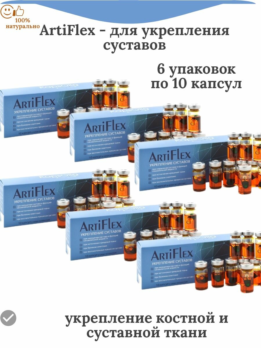 Купить Укрепление суставов ArtiFlex от Сашера-Мед, для костей и суставов, желтое, 6 упаковок по 10 капсул с доставкой по всей России.