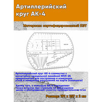 Артиллерийский круг АК-4 совместно с масштабно-прицельной линейкой МПЛ-25 предназначен для построения и измерения углов и измерения расстояний на карте (планшете). Кроме того, с помощью АК-4 определяют точки встречи при стрельбе по движущимся целям и распределяют участки заградительного огня.