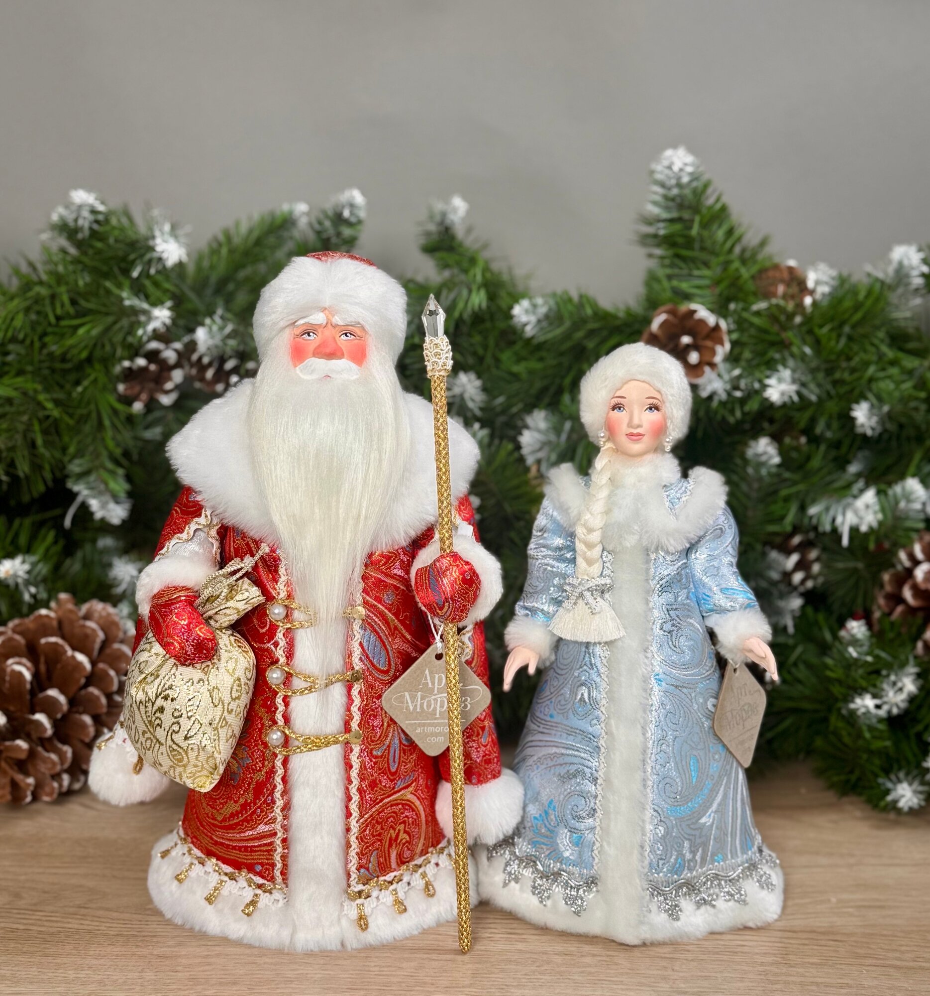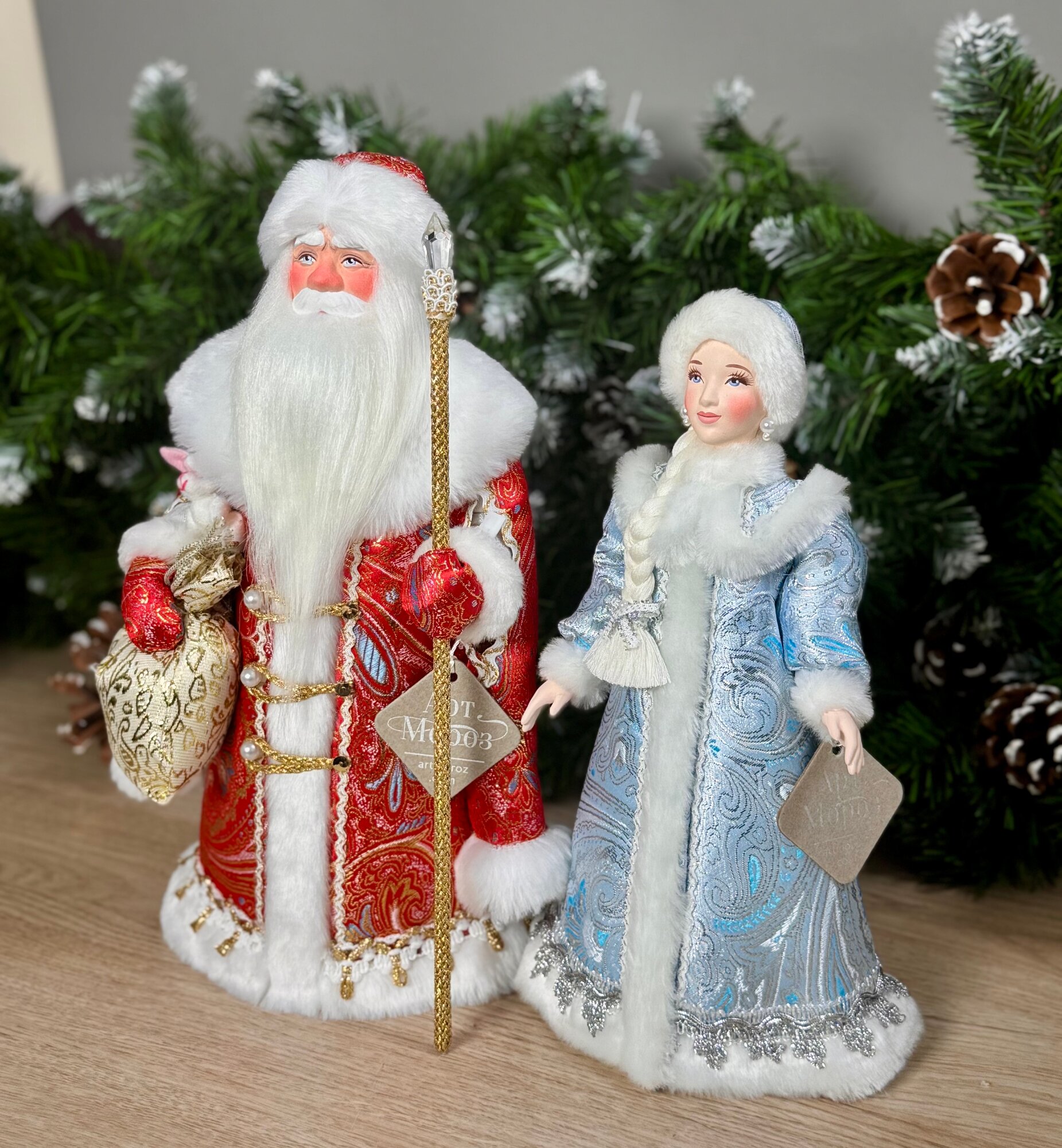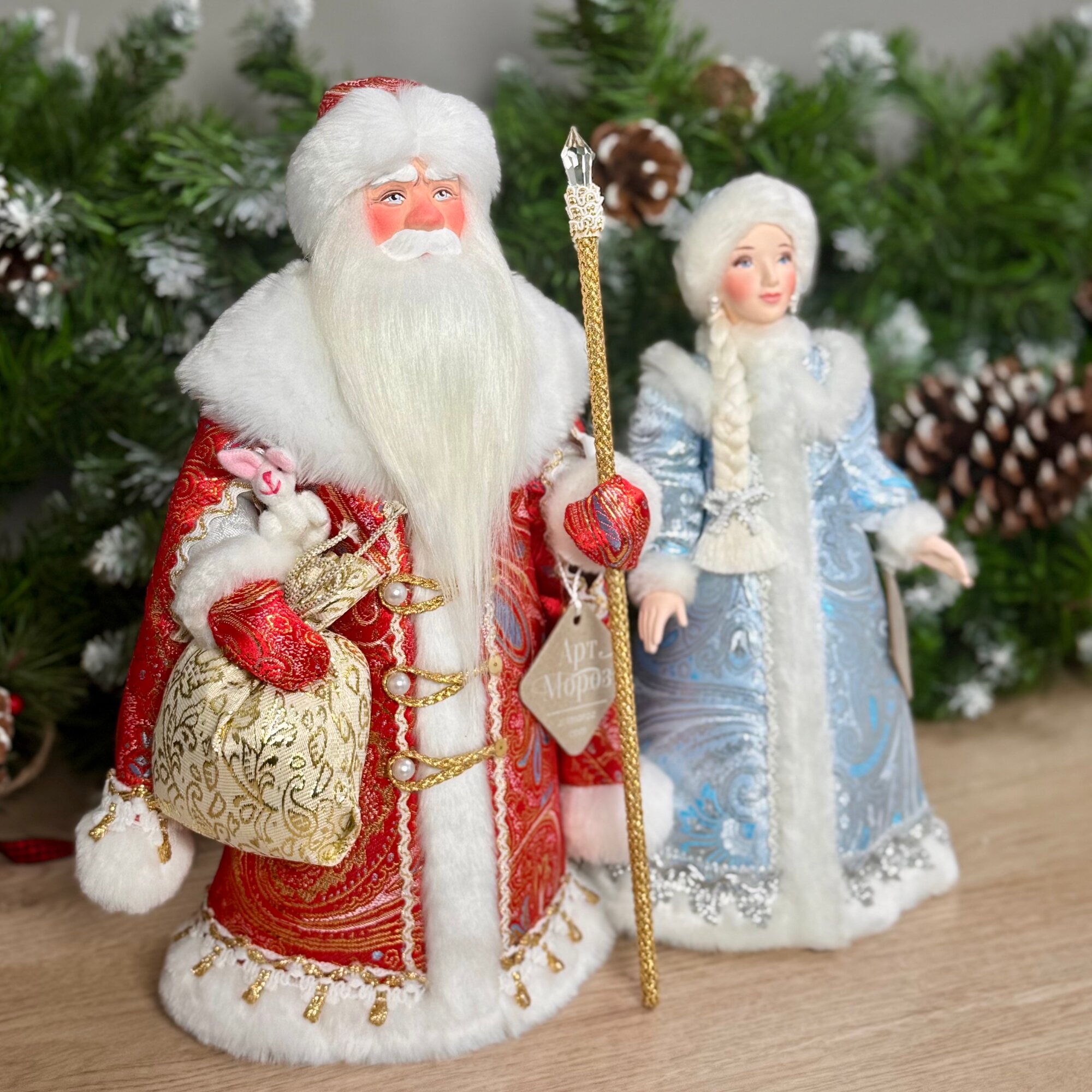 Купить АртМороз Дед мороз и Снегурочка русские 33см; новогодняя игрушка под ёлку; авторская кукла ручной работы с доставкой по всей России.