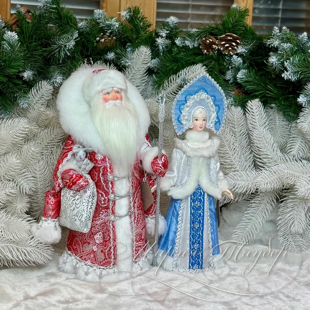 АртМороз Дед мороз и Снегурочка русские 33см; новогодняя игрушка под ёлку; авторская кукла ручной работы