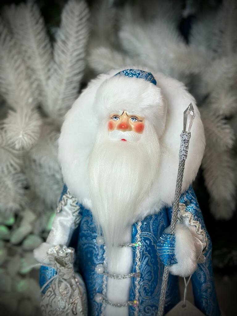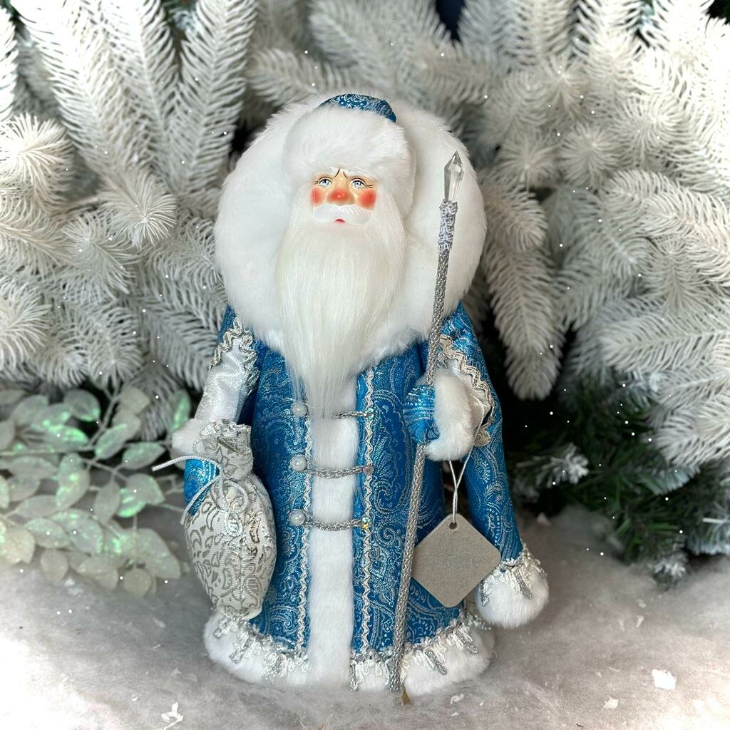 Дед мороз в бирюзовой шубке под елку, 33см.