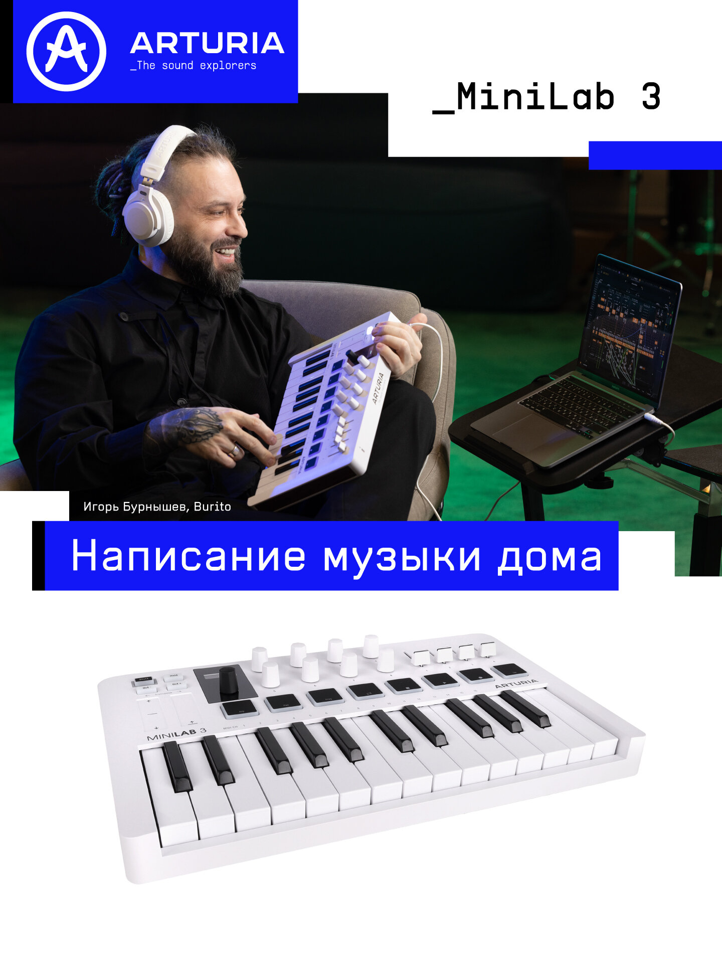Купить MIDI-клавиатура Arturia MiniLab3 с 25 клавишами, 8 пэдами, 8 регуляторами и дисплеем с доставкой по всей России. MIDI-клавиатура Arturia MiniLab3 с 25 клавишами, 8 пэдами, 8 регуляторами и дисплеем: сравнение цен, характеристики, фото, актуальное наличие и цены.