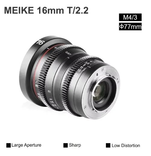 Meike 16mm T2.2 ручная фокусировка для Olympus Panasonic, 16mm T2.2