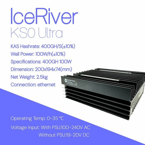 Асик майнер ICERIVER KS0 ULTRA 400 GH/S - это компактное и энергоэффективное устройство, предназначенное для добычи криптовалют Sedra и Kaspa.