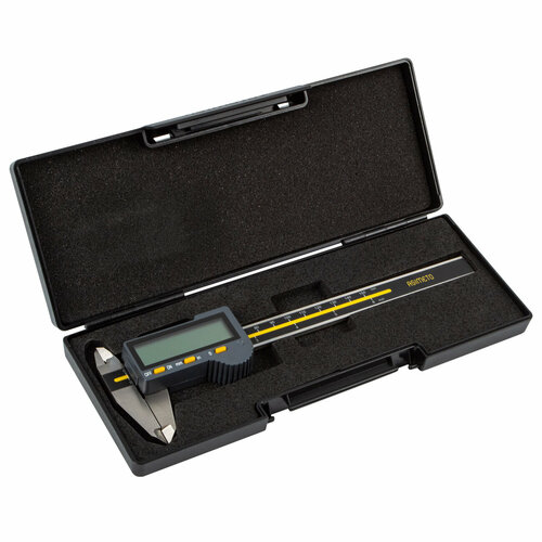 Цифровой штангенциркуль ASIMETO 306-06-6 для измерения наружных и внутренних размеров. При работе с цифровыми штангенциркулями результат измерений отображается на дисплее. Инструмент используют, когда данные необходимо получить быстро, без расчёта дополнительных шкал.