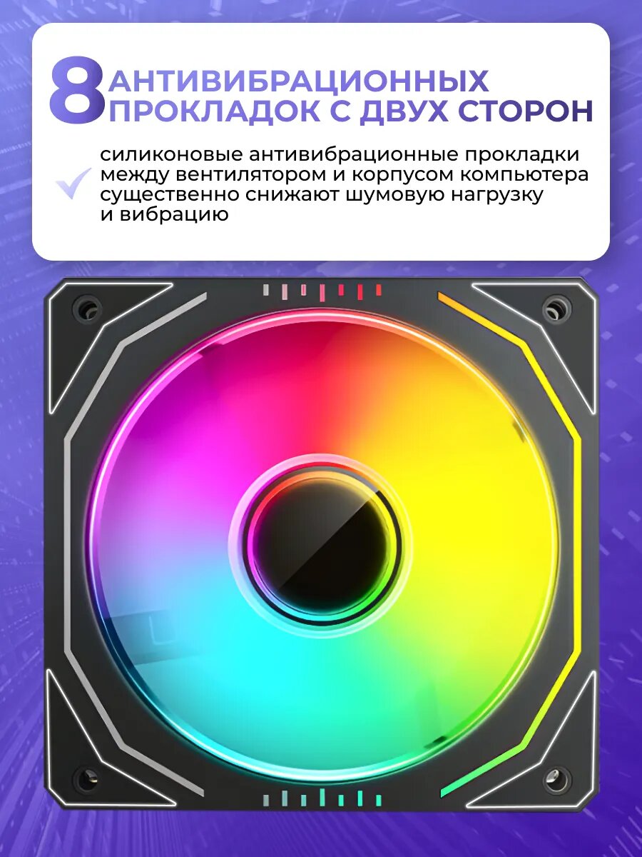 Кулер для ПК для охлаждения процессора и радиаторов СЖО. Вентилятор с асинхронный подсветкой компьютерный имеет размеры: 120х120х25 мм. Асинхронный вентилятор имеет прорезиненные углы и характерную форму внешнего вида. Он поддерживает синхронные и асинхронные изменения, имеет независимое управление тремя зонами, а освещение представлено в левой и правой/верхней и нижней секциях. Это один из асинхронных вентиляторов, созданных с изобретательностью в этом году. Его необходимо использовать с асинхронным контроллером, чтобы иметь асинхронную функцию. Если это обычный синхронный контроллер, он имеет только синхронную функцию.