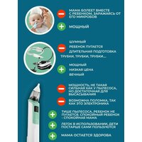 Аспиратор назальный для очищения носа у младенцев и детей. Электрический соплеотсос для детей за несколько секунд удалит слизь при помощи силиконовой насадки и вакуумного устройства. Назальный аспиратор для новорожденных прекрасно подходит и малышам любого возраста. Аспиратор детский для носа исключает повреждение сосудов и капиляров. Соплесос имеет шесть мощностей всасывания. В комплекте аспиратор электрический, две силиконовые насадки для аспиратора, USB, сменные фильтры. Аспиратор детский назальный почти бесшумный, можно использовать во время сна. Соплеотсос для новорожденных легко разбирается и моется. Этот прекрасный соплеотсасыватель безопасный и гигиеничный ингалятор от насморка детям. Электрический аспиратор для носа детский прост в обращении, компактен и удобен для использования дома и в путешествии. Детский электронный соплеотсос - лучший выбор заботливых родителей. Соплеотсос электрически изготовлен из гипоалергенного ABS-пластика. Мощность аспиратора <=4,0 Вт. Электронный аспиратор от заложенности носа зяряжается через USB. подарок на выписку из роддома