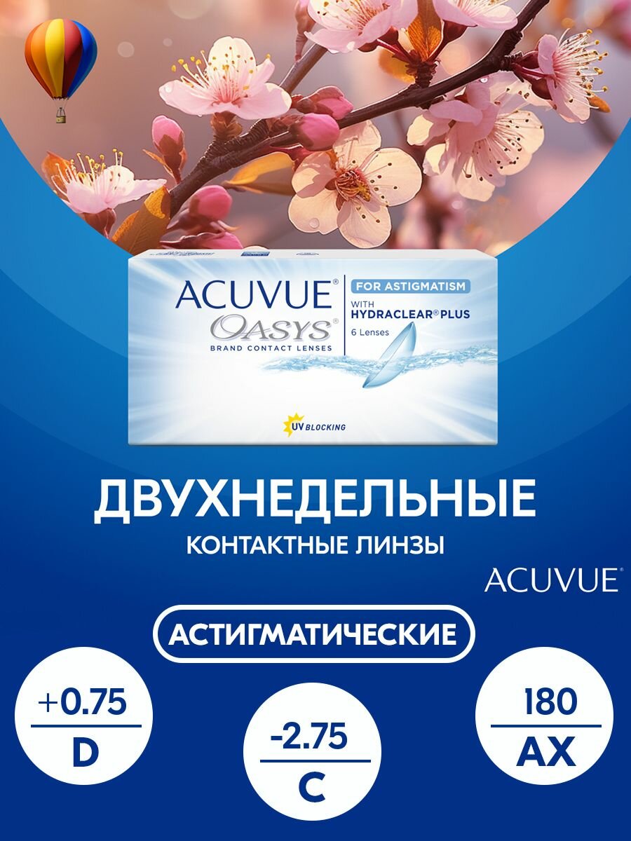 Купить Астигматические линзы Acuvue, Oasys for Astigmatism, +0.75 I цилиндр -2.75 I ось 180 I 6 линз I двухнедельные с доставкой по всей России. Астигматические линзы Acuvue, Oasys for Astigmatism, +0.75 I цилиндр -2.75 I ось 180 I 6 линз I двухнедельные: сравнение цен, характеристики, фото, актуальное наличие и цены.