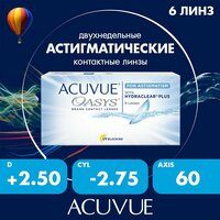 Купить Астигматические линзы Acuvue, Oasys for Astigmatism, +2.50 I цилиндр -2.75 I ось 60 I 6 линз I двухнедельные с доставкой по всей России.