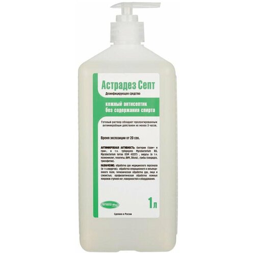Бесспиртовой антисептик для обработки кожных покровов и небольших по площади поверхностей.Назначение: - хирургическая и гигиеническая обработка рук; - обработка локтевых сгибов доноров, кожных покровов перед введением катетеров и пункцией суставов, операционных и инъекционных полей, кожи лица и слизистых; частичная санитарная обработка кожных покровов, в том числе ступней ног с целью профилактики грибковых заболеваний; - экспресс-дезинфекция различных твердых поверхностей и предметов, в частности небольших по площади или труднодоступных, мягкой мебели, аппаратуры и оборудования, в частности медицинского назначения (в т.ч. поверхностей аппаратов искусственного дыхания, оборудования для анестезии и гемодиализа, стоматологического оборудования, датчиков УЗИ и ЭКГ, наружных поверхностей несъемных узлов и деталей эндоскопических установок, физиотерапевтического оборудования, медицинских термометров, стетоскопов, фонендоскопов и стетофонендоскопов), - обеззараживание перчаток из полимерных материалов, надетых на руки; - дезинфекция ковриков из резин и полимерных материалов и др. Средство обладает бактерицидной активностью в отношении грамотрицательных (включая синегнойную палочку) и грамположительных бактерий (включая микобактерии туберкулеза – тестировано на культурах тест-штаммов Mycobacterium B5, Mycobacterium terrae DSM 43227) и вирулицидными свойствами (в отношении вирусов полиомиелита, гепатита, в т.ч. в отношении вирусов энтеральных, парентеральных гепатитов, ВИЧ-инфекции, полиомиелита, энтеровирусов Коксаки, ЕСНО, ротавирусов, аденовирусов, риновирусов, вирусов гриппа, в том числе типа А, H1N1, H5N1, парагриппа и др., возбудителей острых респираторных вирусных инфекций, вируса атипичной пневмонии, герпеса, цитомегаловирусной инфекции, вируса Эбола), фунгицидной активностью в отношении возбудителей кандидоза и трихофитии. Обладает пролонгированным бактерицидным действием не менее 3-4 часов. Не оставляет следов на поверхностях после полного высыхания. Область применения: в ЛПУ различного профиля, учреждений соцобеспечения (домах престарелых, инвалидов и др.), работников парфюмерно-косметических предприятий, на предприятиях химико-фармацевтической и биотехнологической промышленности, в зонах ЧС, в пенитенциарных учреждениях, на объектах коммунально-бытового хозяйства (парикмахерские, СПА-салоны, гостиницы, общежития и пр.), на общественном транспорте, в спортивно-оздоровительных учреждениях, на предприятиях общественного питания, торговли, для представителей силовых ведомств, в т.ч. спасателей МЧС, личного состава войск и формирований ГО, а также населением в быту, и др. Особенности: - широкая сфера применения; - удобные потребительские упаковки; - бюджетный препарат в т. ч. для обработки слизистых и кожи лица. Состав: гидроксидихлордифениловый эфир (диклозан) – (0,03±0,01)%; полигесаметиленгуанидин гидрохлорид (ПГМГ-ГХ) – (0,10±0,01)%, N,N-бис (3-аминопропил) додециламин – (0,15±0,05)%, ЧАС (суммарно) – (0,30±0,03)%, D-пантенол, аллантоин, смесь косметических ПАВ, а также функциональные добавки, смягчающие кожу. Форма выпуска: жидкость, Режимы дезинфекции: дезинфекция кожных покровов, дезинфекция поверхностей, Область применения: детские учреждения (детсады, школы и т.п.), коммунальные объекты (бани, бассейны, гостиницы, общественные туалеты и т.п.), куро