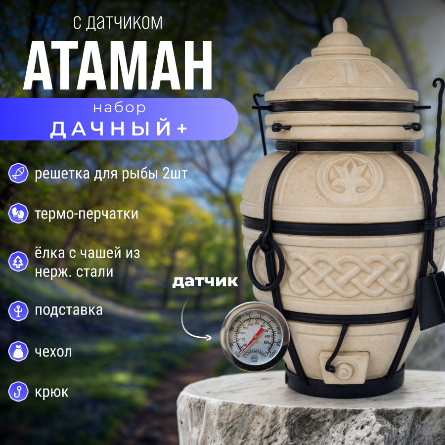 Атаман со съемной крышкой — Комплект «Дачный+»- тандыр для дачи большой с термометром (требует установки)- 95 л, Амфора.: сравнение цен, характеристики, фото, актуальное наличие и цены.