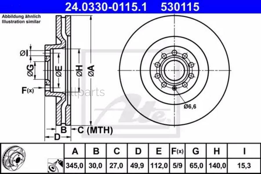 ATE 24.0330-0115.1 Диск тормозной передний: сравнение цен, характеристики, фото, актуальное наличие и цены.