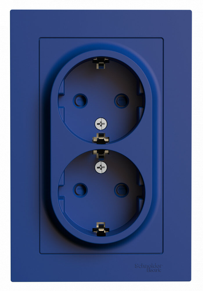 AtlasDesign Аквамарин Розетка двойная с заземлением со шторками, 16А, в сборе, Systeme Electric, ATN001126: сравнение цен, характеристики, фото, актуальное наличие и цены.