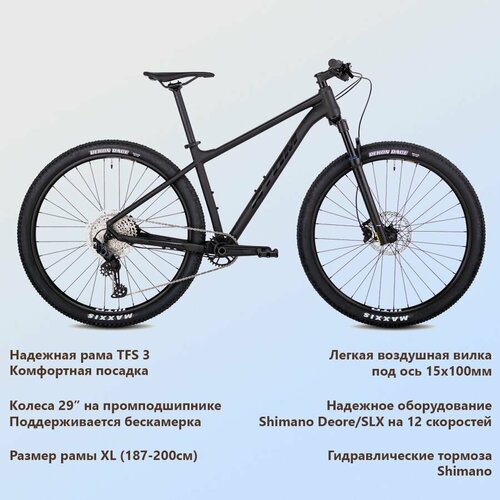 ATOM BION 550 – спортивный маунтинбайк с жёсткой и лёгкой алюминиевой рамой из сплава 6061 с внутренней проводкой. Для более точного управления велосипедом воздушная амортизационная вилка получила вставную ось 15х100 мм для большей жёсткости на скручивание. Велосипед оснащен начальным профессиональным оборудованием трансмиссии 1x12 Shimano Deore / SLX с кассетой с широким диапазоном 11-51T . Каретка BSA с внешними подшипниками, надёжные гидравлические тормоза Shimano MT402 и быстрые покрышки Maxxis Recon Race на ободах WTB поддерживающих бескамерную установку. Втулки колес от Shimano на промышленных подшипниках. Велосипед готов к большинсту любительских гонок и станет надежным компаньоном в ваших повседневных поездках на многие годы.