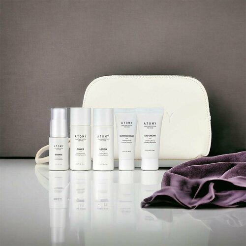 Дорожный набор ATOMY The Fame Travel Set - это компактный и удобный набор для ухода за кожей лица и декольте, специально разработанный для путешественников.