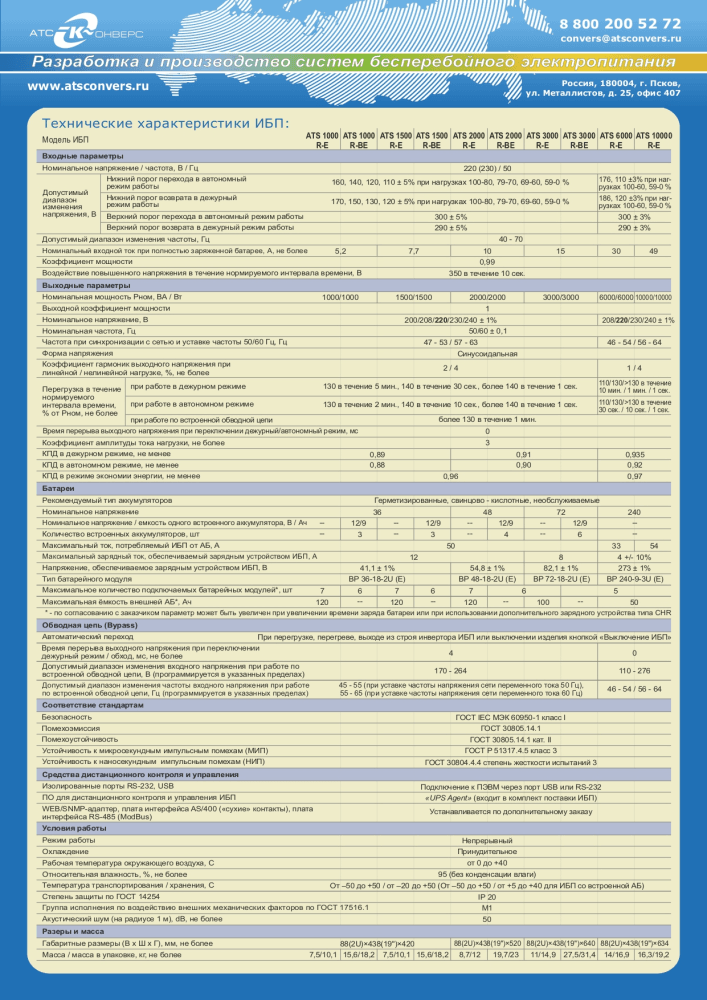 Атс-конверс Источник бесперебойного питания 1500 ВА/1500 Вт (online, Iзу=12А, встроенная АБ 36В, Rack/Tower) ATS 1500 R-BE: сравнение цен, характеристики, фото, актуальное наличие и цены.