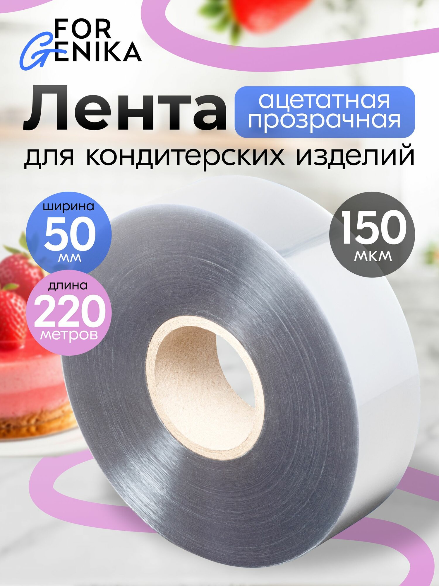 Купить Ацетатная пленка для торта (150 мкм 5 см 220 м), бордюрная лента для кондитерских украшений изделий, оформление упаковки выпечки и десертов с доставкой по всей России.