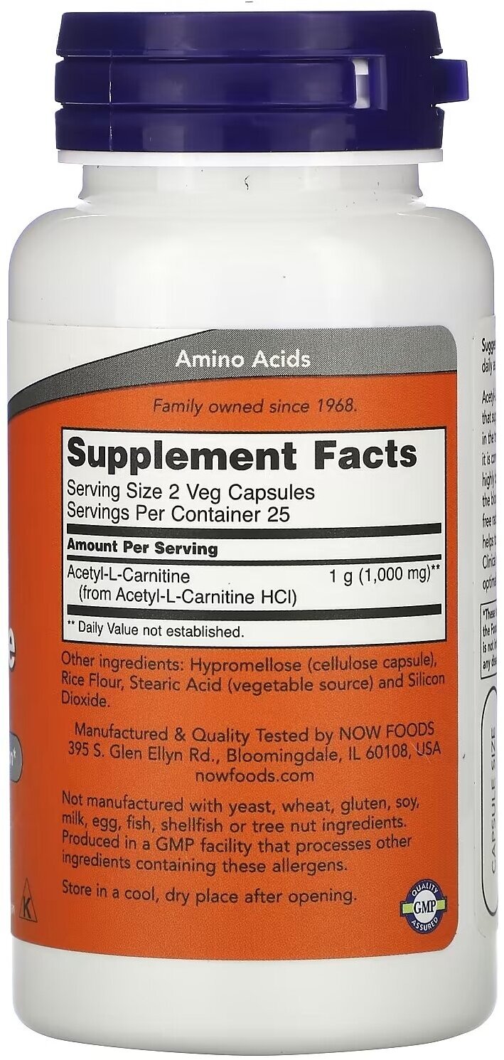 Ацетил-L-Карнитин 500 мг Acetyl-L-Carnitine Now Foods 50 капсул