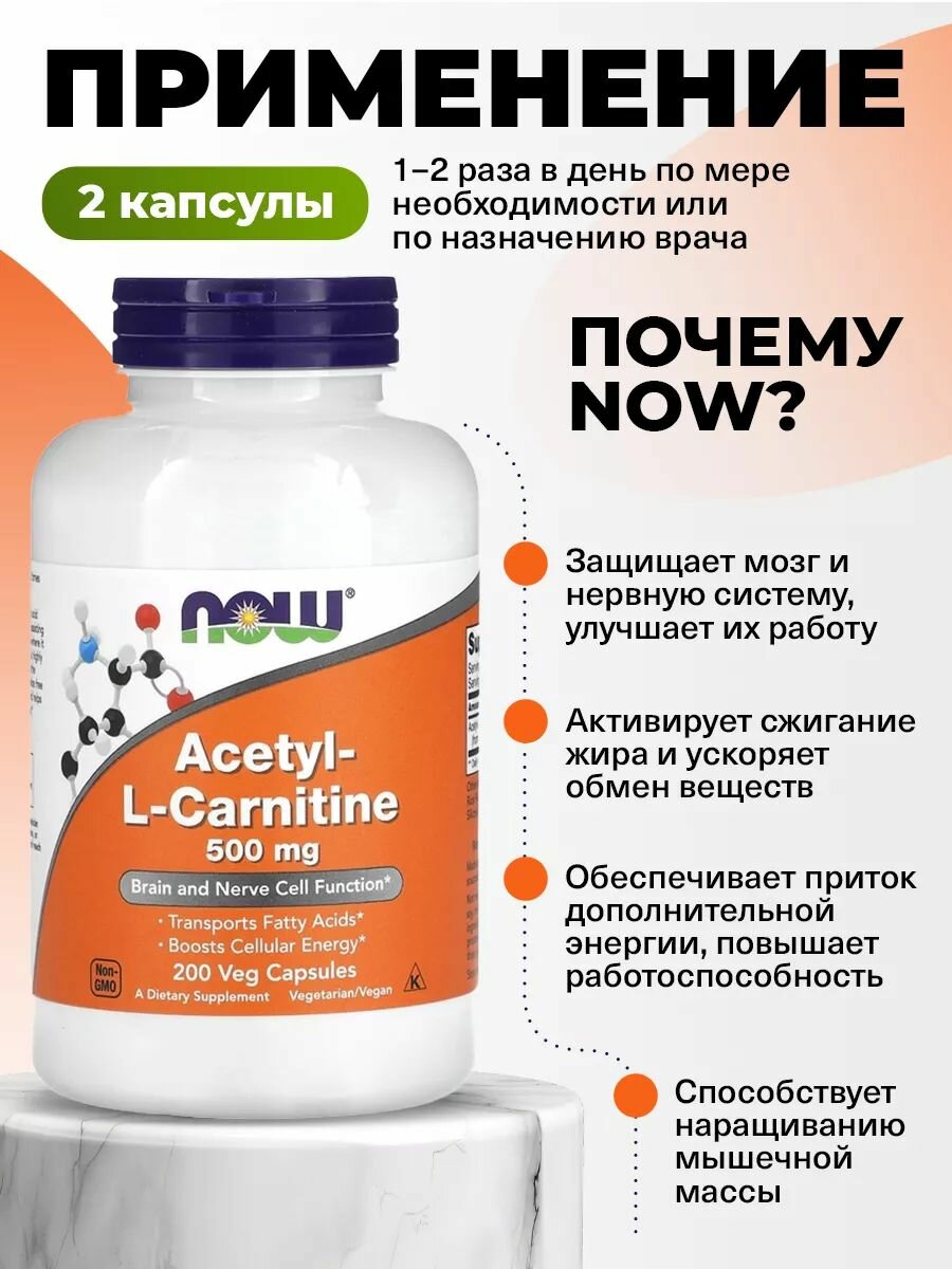 Купить NOW Acetyl-L-Carnitine 500mg, Ацетил Л Карнитин, 200 капсул, для набора мышечной массы, для мозга и нервной системы с доставкой по всей России. NOW Acetyl-L-Carnitine 500mg, Ацетил Л Карнитин, 200 капсул, для набора мышечной массы, для мозга и нервной системы: сравнение цен, характеристики, фото, актуальное наличие и цены.