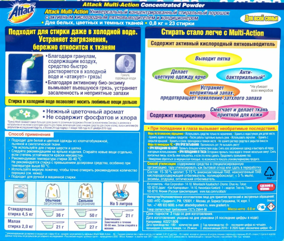 Купить Attack Набор Attack, Multi-Action стиральный порошок с кислородным пятновыводителем и кондиционером, 0,8 кг — 8шт с доставкой по всей России. Attack Набор Attack, Multi-Action стиральный порошок с кислородным пятновыводителем и кондиционером, 0,8 кг — 8шт: сравнение цен, характеристики, фото, актуальное наличие и цены.