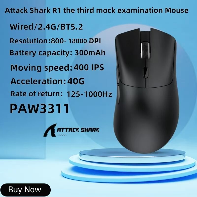 Attack Shark R1 Трехрежимная игровая мышь сенсор PixArt PAW3311, 18000 точек на дюйм, 1000 Гц, Чёрный: сравнение цен, характеристики, фото, актуальное наличие и цены.
