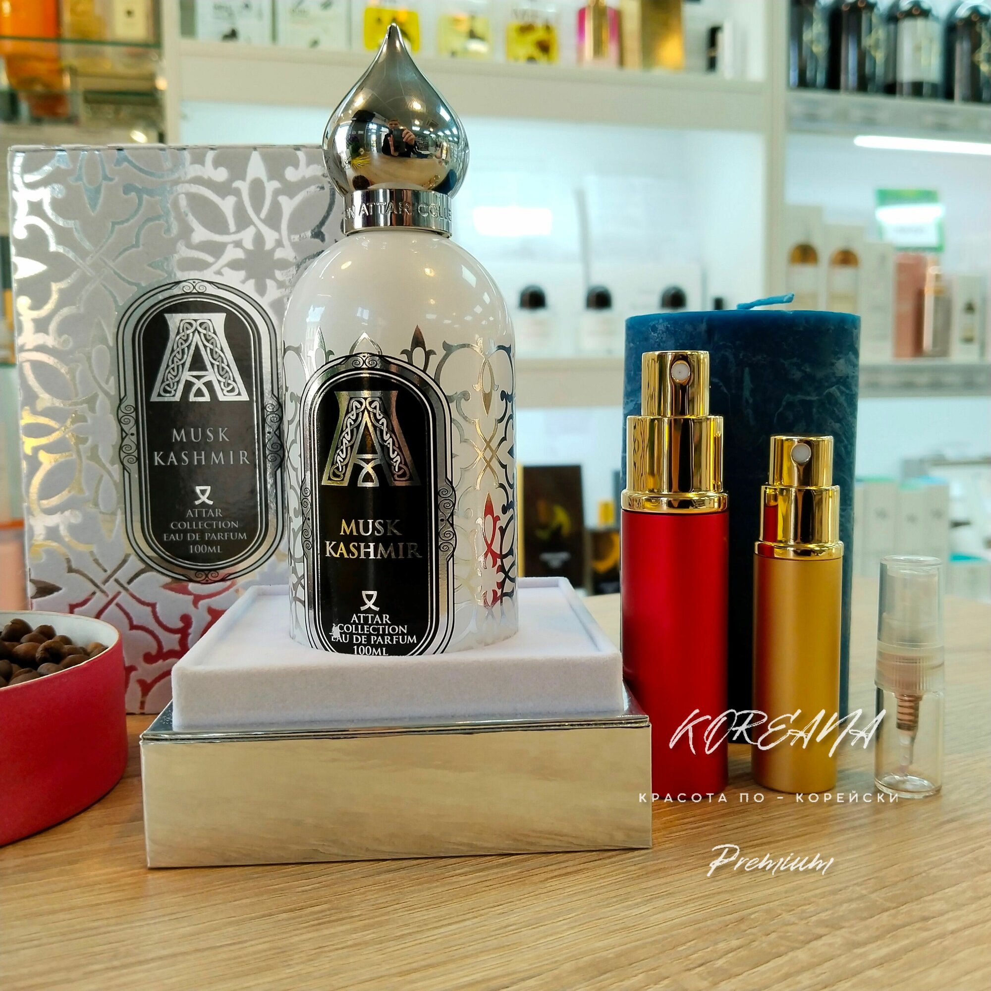 Musk Kashmir – мягкий, игривый, окутывающий и загадочный древесно-мускусный унисекс парфюм с легкими цветочными акцентами. Аромат выпущен в 2016 году известным арабским брендом элитной парфюмерии Attar Collection и заключен в изящный серебристый флакончик, украшенный тонкой вязью арабского орнамента.