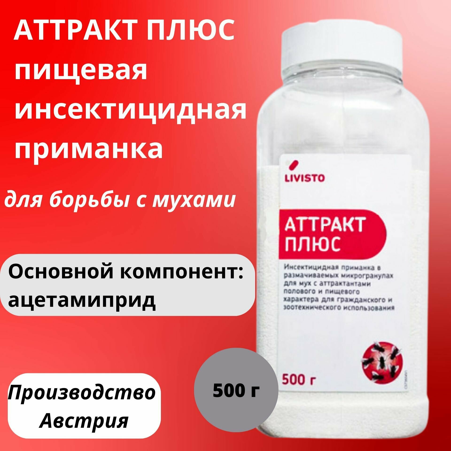Купить Аттракт плюс пищевая инсектицидная приманка для борьбы с мухами, Livisto, 500 г с доставкой по всей России.