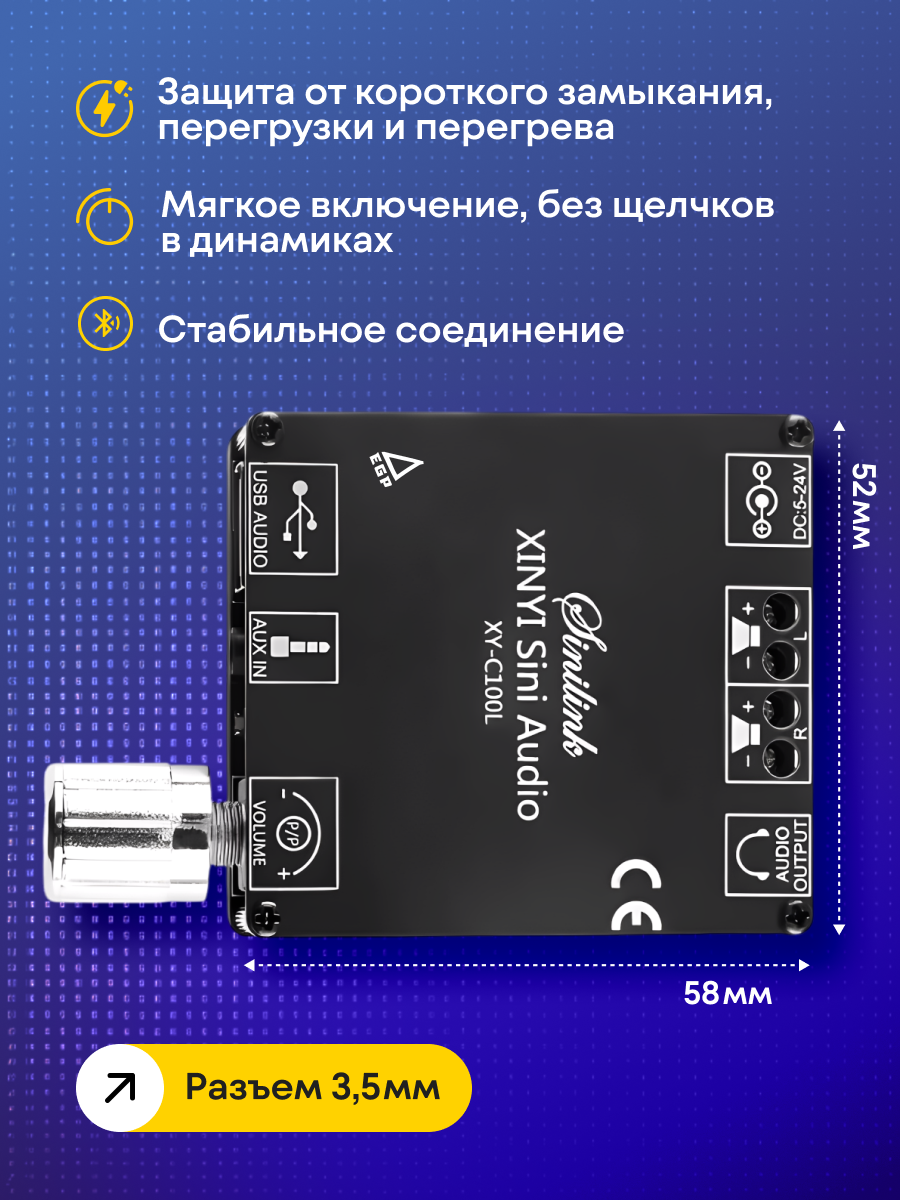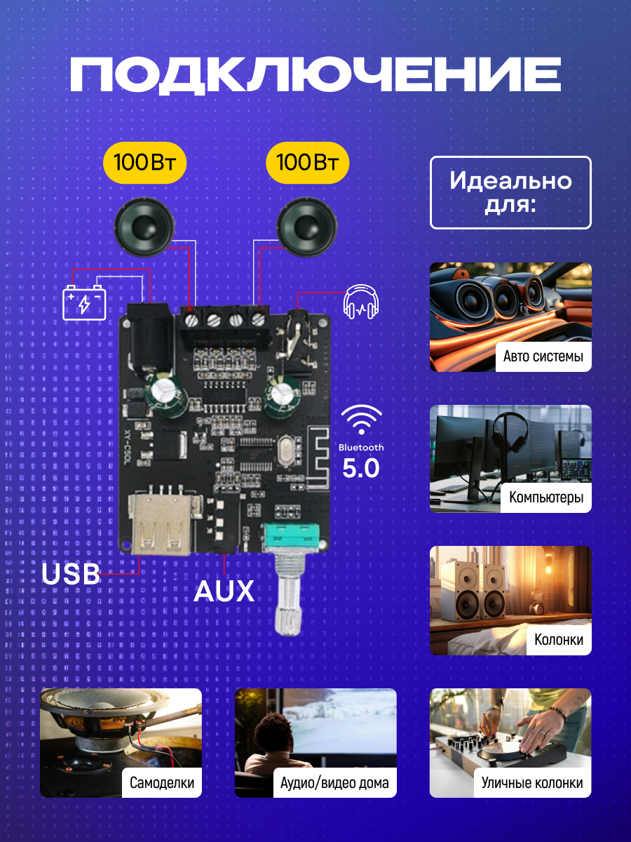 Аудио усилитель мощности 2х50 Вт с AUX/USB/Bluetooth с радиатором EGP PROever 505JT