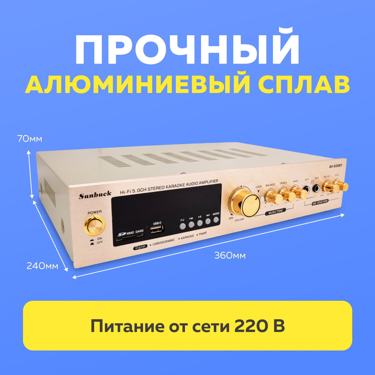 Аудио усилитель звука Sunbuck AV-608BT, Bluetooth, цвет черный: сравнение цен, характеристики, фото, актуальное наличие и цены.