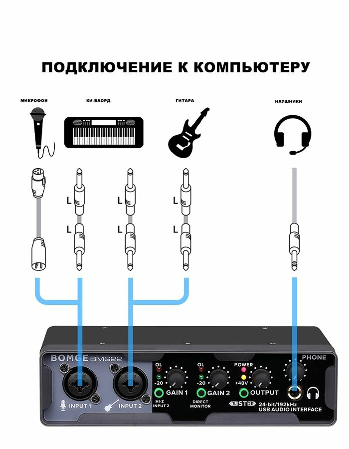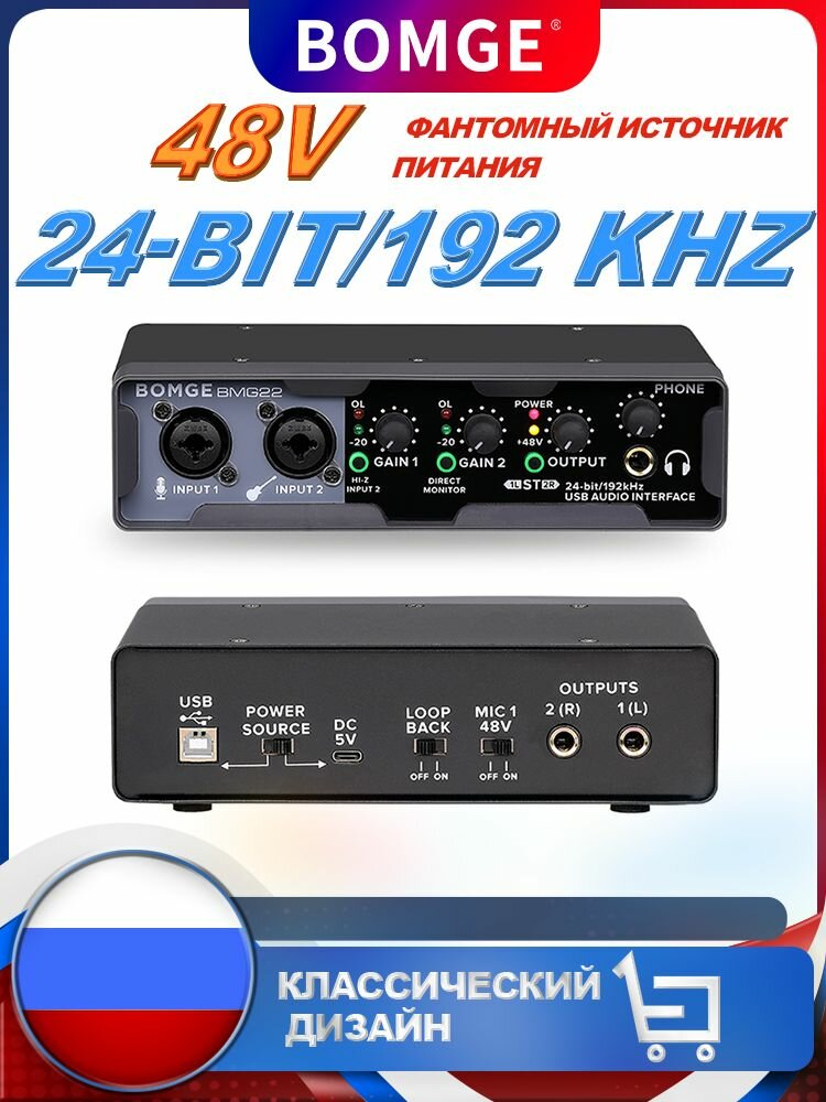 Аудиоинтерфейс BOMGE USB (24 бит/192 кГц) с XLR, фантомным питанием, прямым мониторингом, обратной связью для записи на ПК, потоковой передачи, гитариста, вокалиста и подкастинга: сравнение цен, характеристики, фото, актуальное наличие и цены.