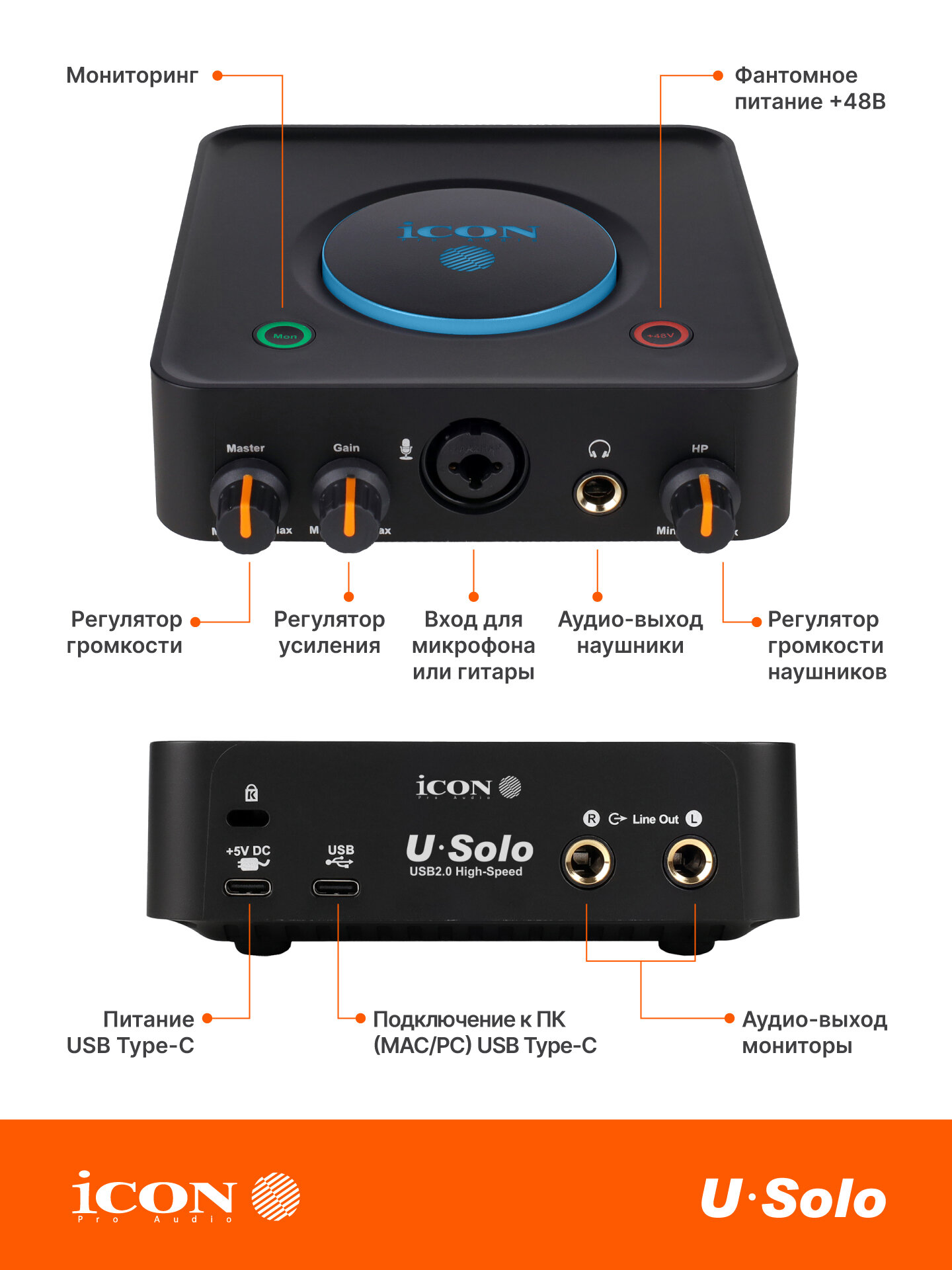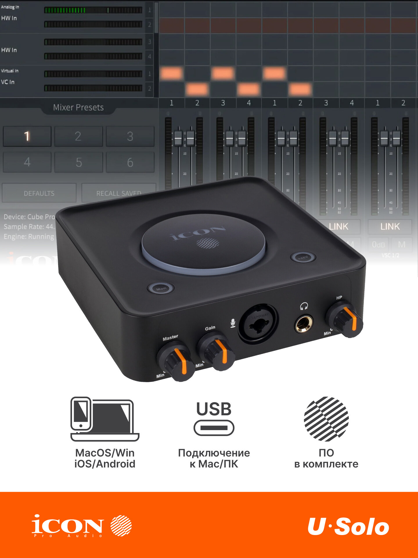 Аудиоинтерфейс Icon USolo, АЦП/ЦАП 24 бит/192 кГц, 20-20000 Гц, 108 дБ, USB-C: сравнение цен, характеристики, фото, актуальное наличие и цены.